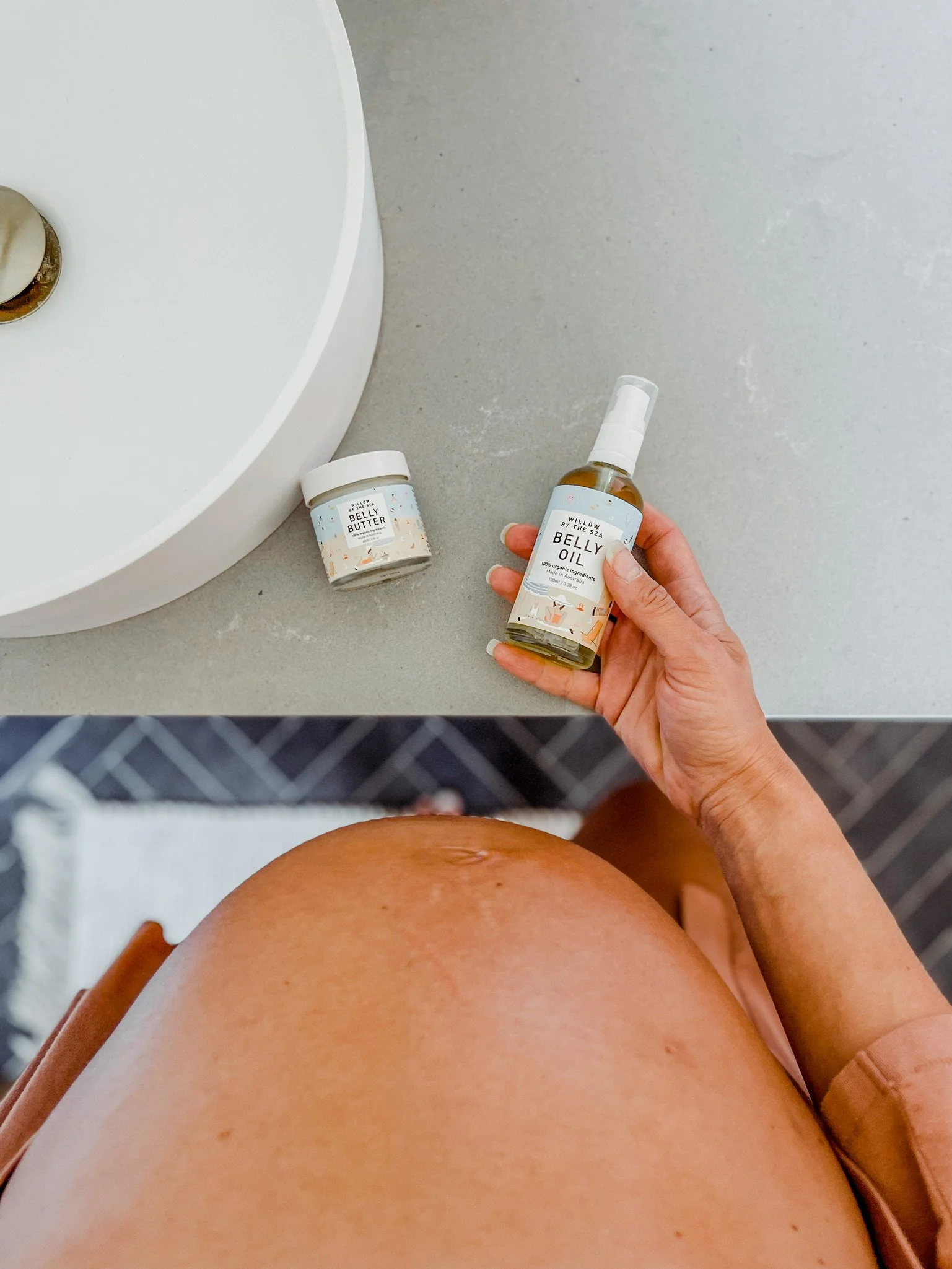 Belly balm in use